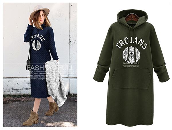 韓國K.W. SXL長板英文字母寬鬆連帽T恤洋裝",比較
